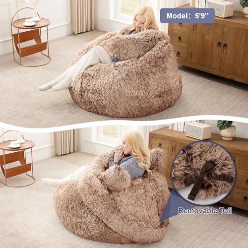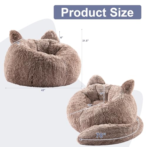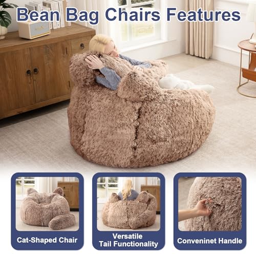Bean Bag Chair for Adults Teens Giant Faux Fur Bean Bag Chairs with Filler Fluffy Plush Cat Shaped Beanbag Couch Comfy Accent Floor Sofa for Gaming, Reading in Living Room, Bedroom, Dorm