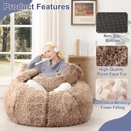 Premium Fabric: The giant bean bag chair features a luxurious, fluffy, plush cover that feels incredibly soft to the touch. Inside, it is filled with high-resilience shredded foam, ensuring comfort and support. The bottom is equipped with a non-slip design, preventing the chair from moving around and providing a stable seating experience.