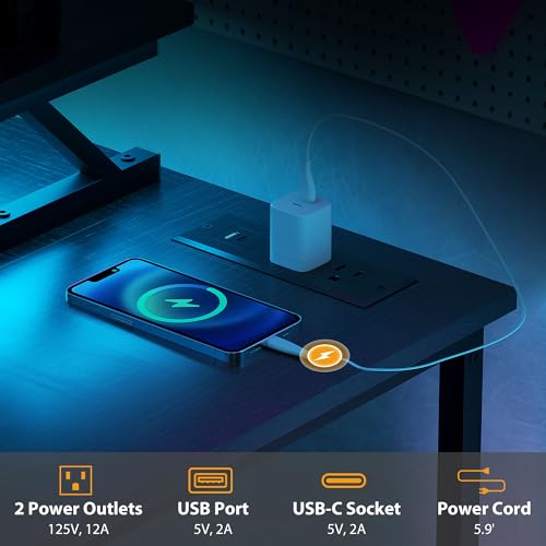Built-in Charging Station: Keep all your devices powered up with two power outlets, a USB port, and a USB-C socket, all integrated into the tabletop of this study desk