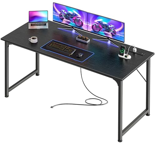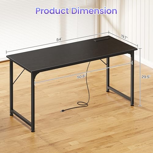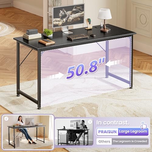 PRAISUN 55 X 20 Inch Office Computer Desk with Power Outlets and USB-C Port, Larger and Longer Gaming Desk, for Home Office, Study, Bedroom, Writing Work from Home Table, Metal Frame, Black
