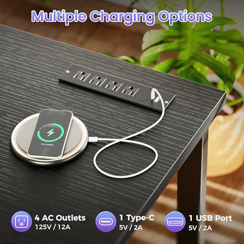【Built-in Charging Station】Stay powered throughout the day with 4 AC outlets, 1 USB port, and 1 USB-C port. Whether it’s your monitor, laptop, lamp, or gaming gear—you can charge everything directly from your work desk for home office, keeping your space neat and cable-free