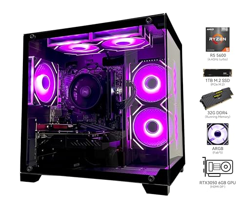 Gaming Desktop Computer PC,AMD Ryzen 5 5600,RTX3050 6GB,32GB RAM and 1TB M.2 NVMe PCle,ARGB Fan,WiFi,Game Design Office Console,Sea View Room,Prebuilt Gaming PC Tower