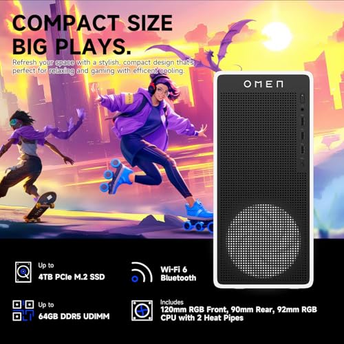 HP OMEN 16L TG03 RTX 5060 Gaming Desktop, Intel Core i7-14700F, NVIDIA RTX 5060, 32GB DDR5 RAM, 2TB SSD, RGB Light Studio & Gaming Hub, W11H,White, Bundle with Thunderobot KG3089R Gaming Keyboard