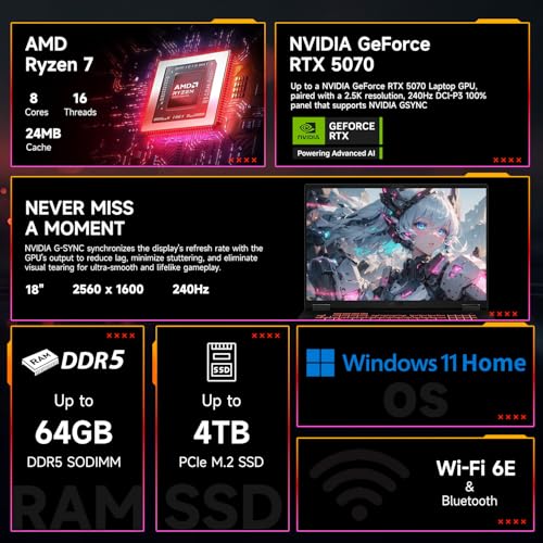 ULTIMATE GAMING PERFORMANCE: Powered by AMD Ryzen 7 260 processor (3.8GHz base, up to 5.1GHz boost, 8 cores/16 threads) paired with NVIDIA GeForce RTX 5070 Laptop GPU with 8GB GDDR7 VRAM – delivers exceptional gaming and multitasking performance for the most demanding titles